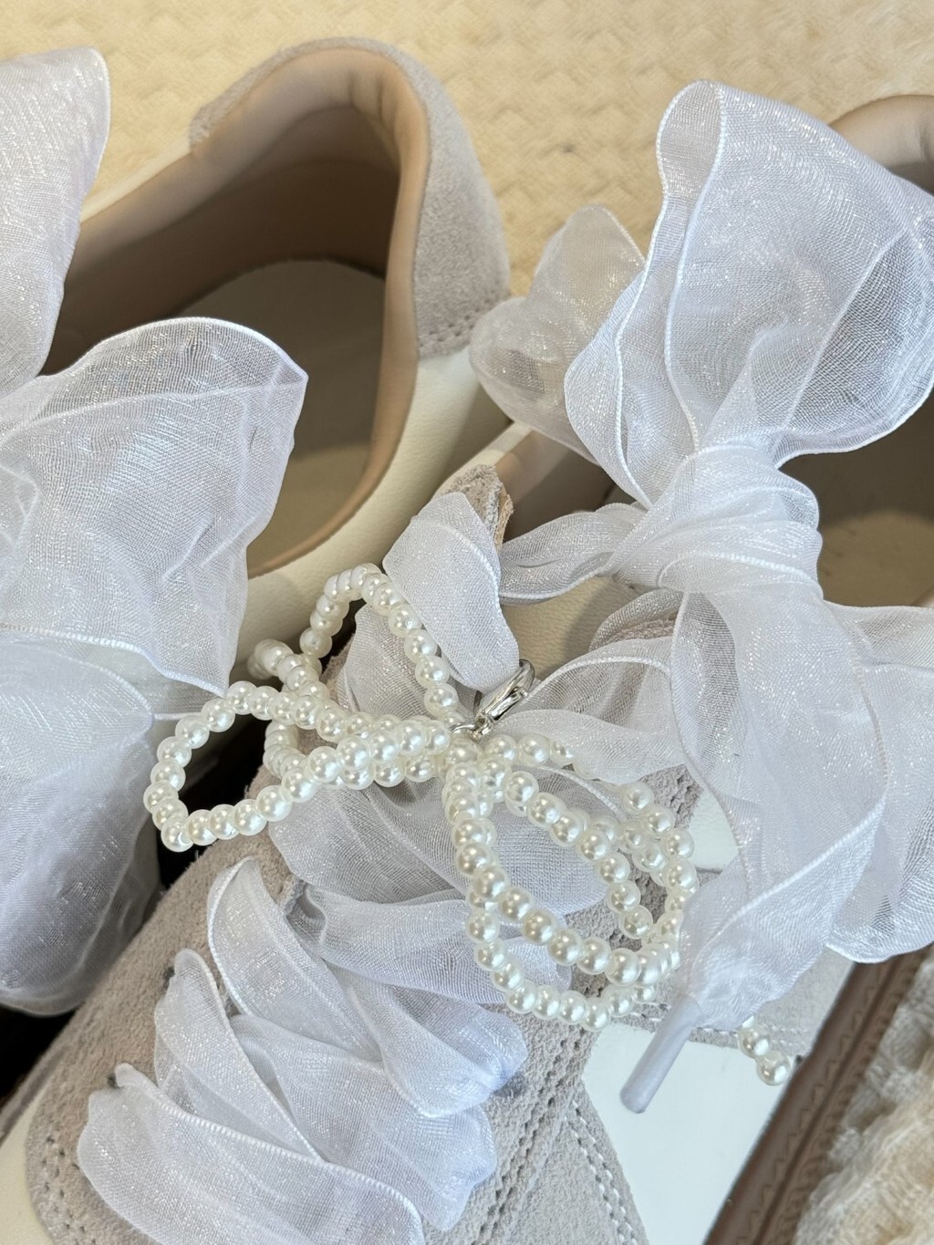 附贈蝴蝶結紗紗鞋帶及珍珠鞋扣